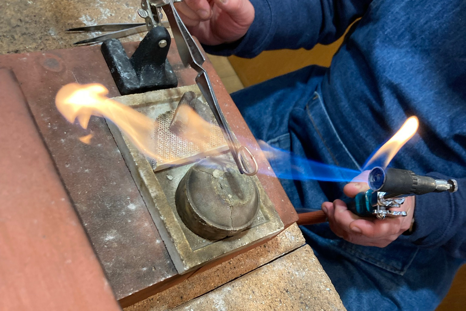 シルバーの棒からキラキラ輝くリングを、すべて手作業で制作します。 バーナーを使った溶接作業やハンマーワークなど、プロと同じ道具を使う本格的な体験。 初めての方でも、スタッフが丁寧にサポートするので安心です。